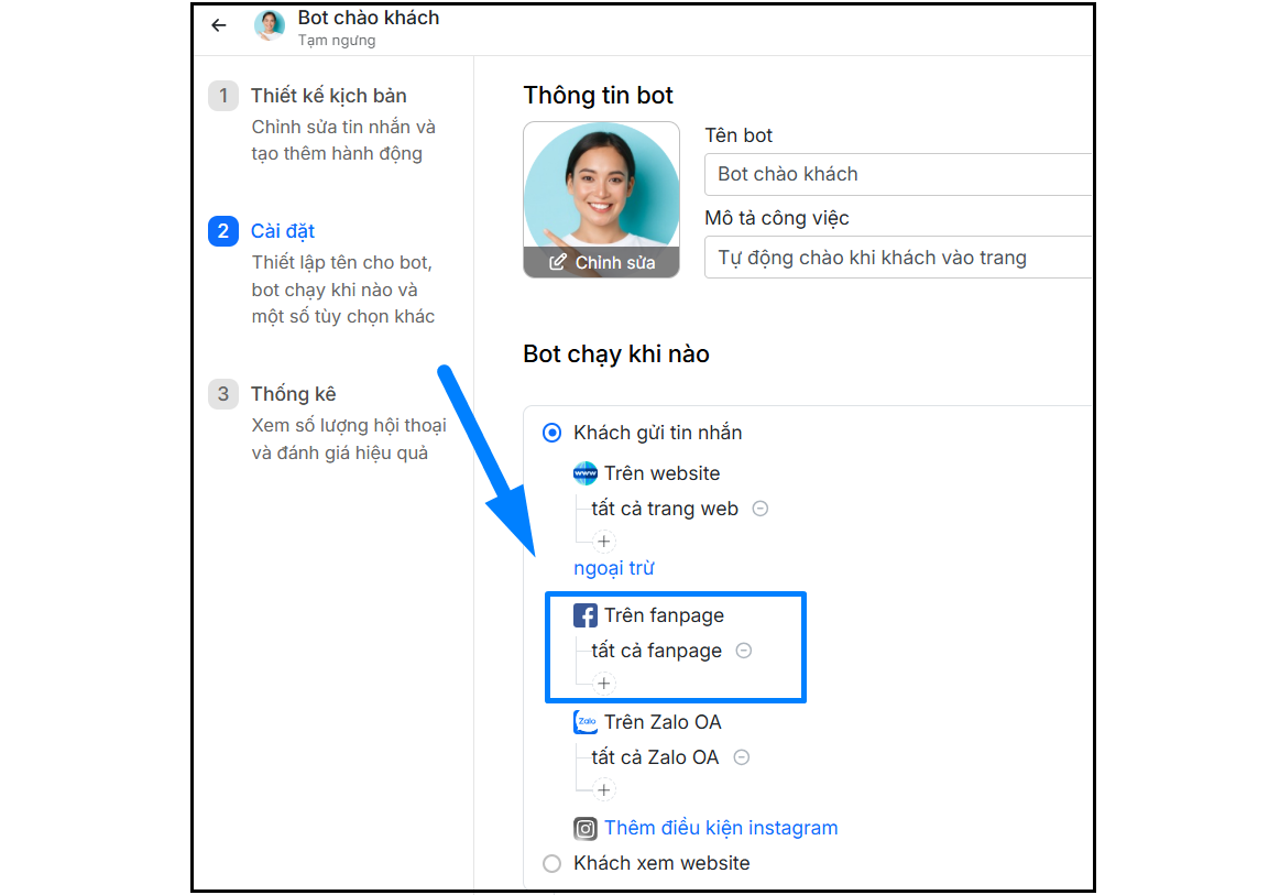 Hoặc thiết lập nhiều bot riêng cho từng Fanpage, phù hợp với từng nội dung và khách hàng.