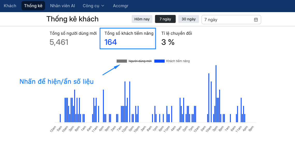 Thống kê lượng người dùng (hay Thống kê khách hàng) cung cấp cho bạn bức tranh tổng quan toàn bộ lượng khách hàng truy cập trên các kênh, ghé thăm website, tương tác phản hồi với doanh nghiệp.