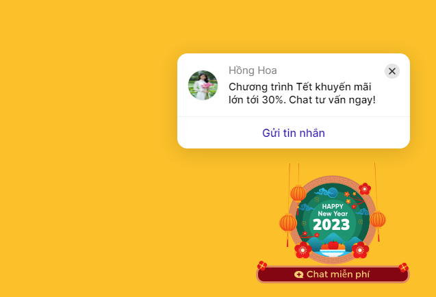Khách truy cập website sẽ nhìn thấy ngay nút chat có hình ảnh Tết tạo sự thu hút khách và thêm rộn ràng không khí Lễ T ết.
