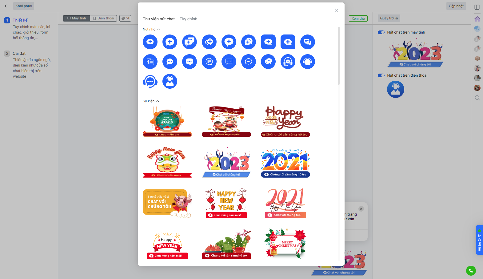 - Chọn nút chat và sử dụng mẫu phù hợp với website của bạn > Cập nhật để hoàn thành