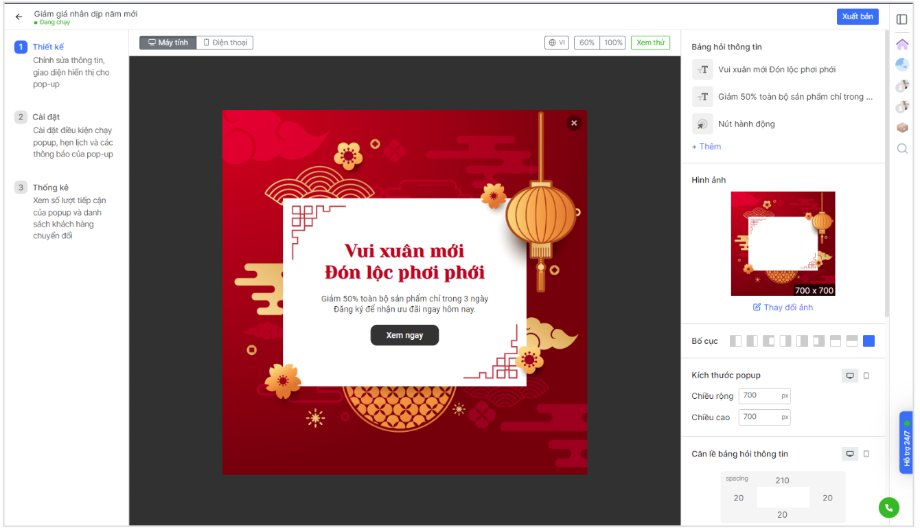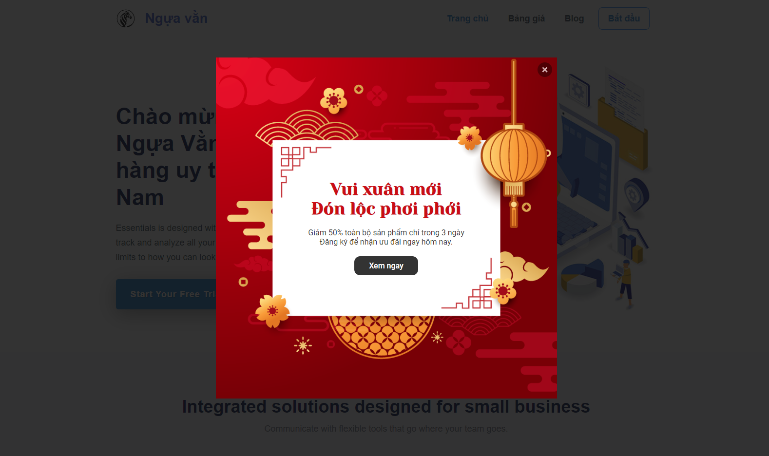 - Pop-up: Thông báo lịch nghỉ Lễ Tết, Gửi l ời chúc khách hàng, Khuyến mãi Lễ Tết.