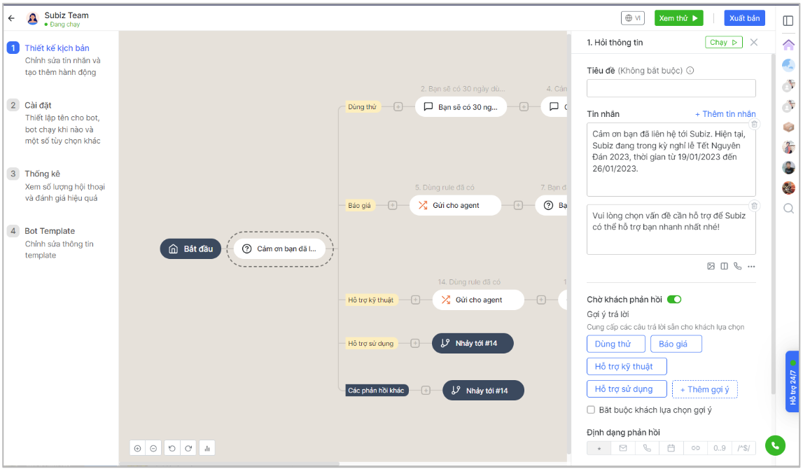 Bot tự động trả lời khi khách nhắn tin trong dịp Lễ Tết