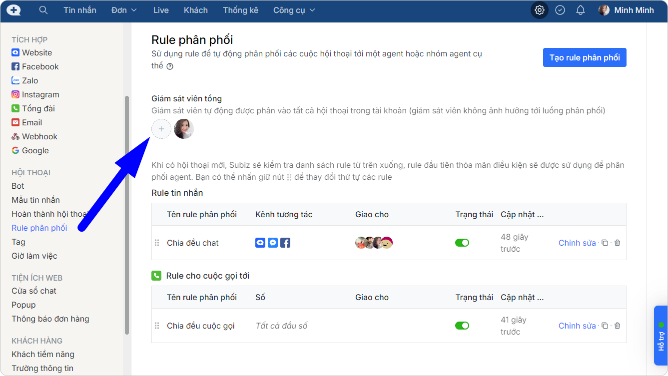 Bạn có thể cài đặt giám sát viên tổng tại trang Rule phân phối.