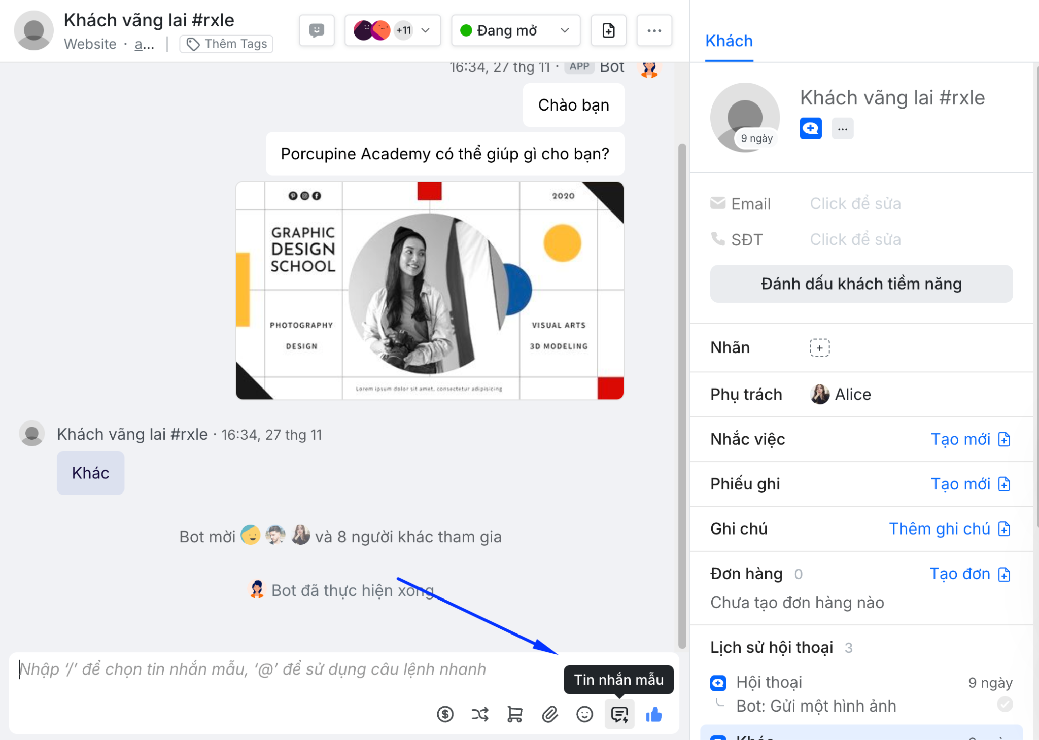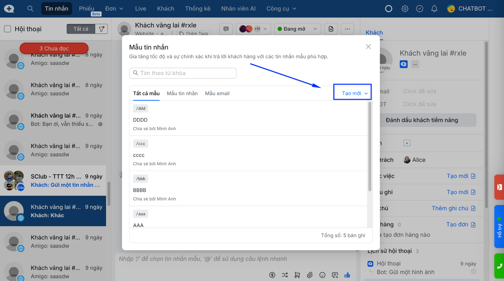 Có 2 cách sử dụng mẫu tin nhắn trong khi chat trả lời khách: