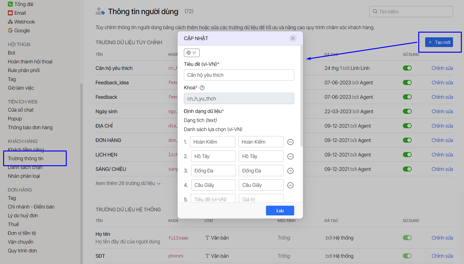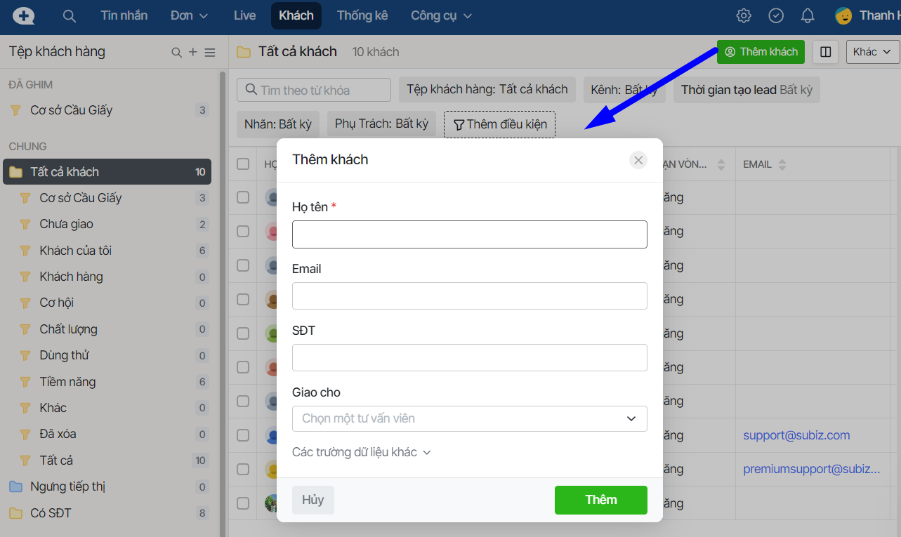 Hướng dẫn tạo thêm thông tin khách hàng: