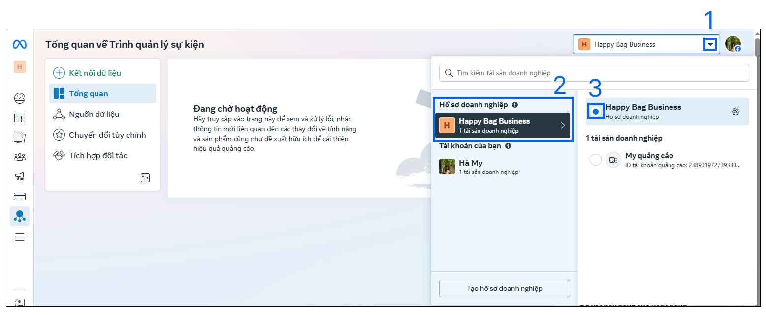 - Truy cập trang Trình quản lý sự kiện qua link: https://business.facebook.com/events_manager2/overview
