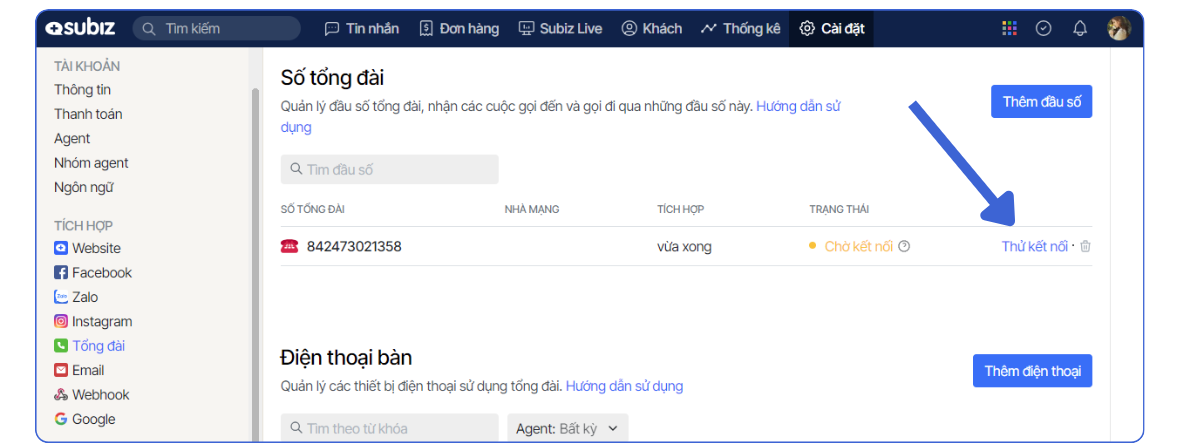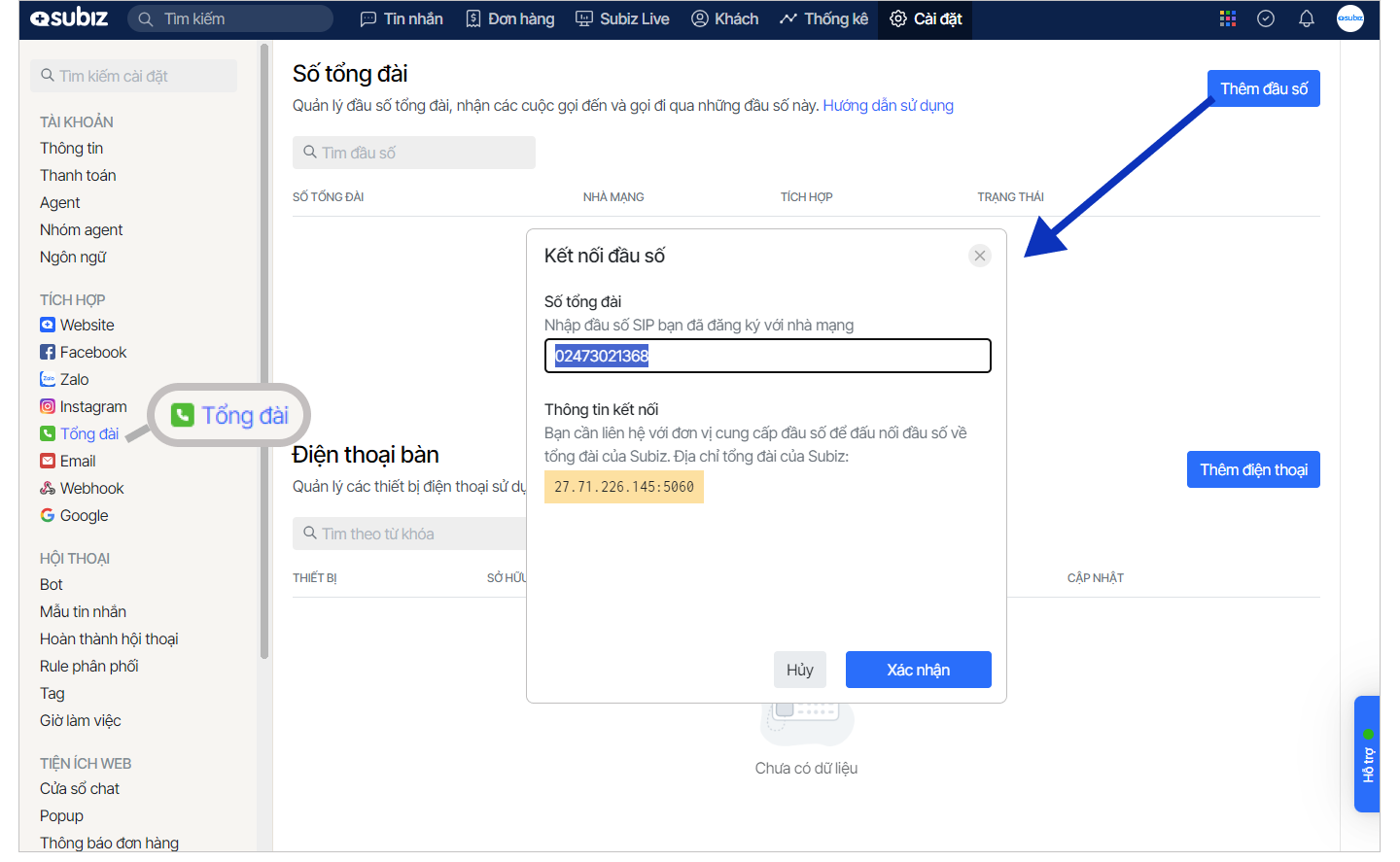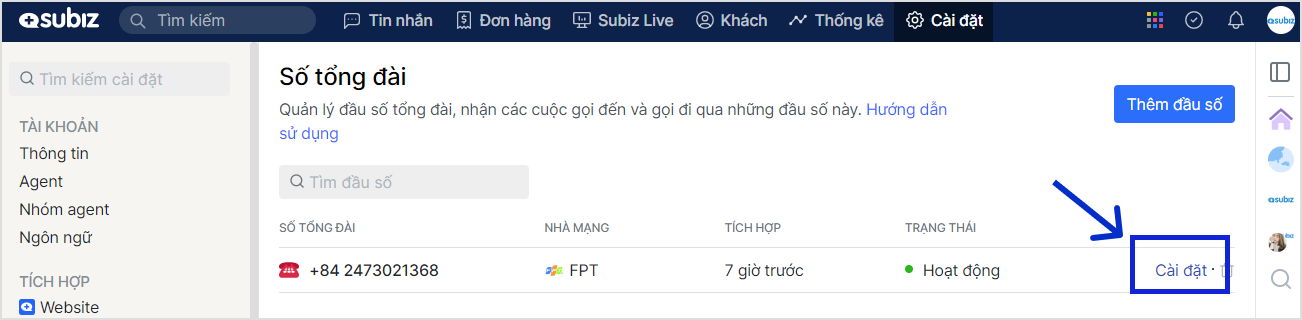 Khi bạn đã có đầu số tổng đài, bạn sẽ thêm đầu số này vào phần mềm Subiz với 4 bước sau: