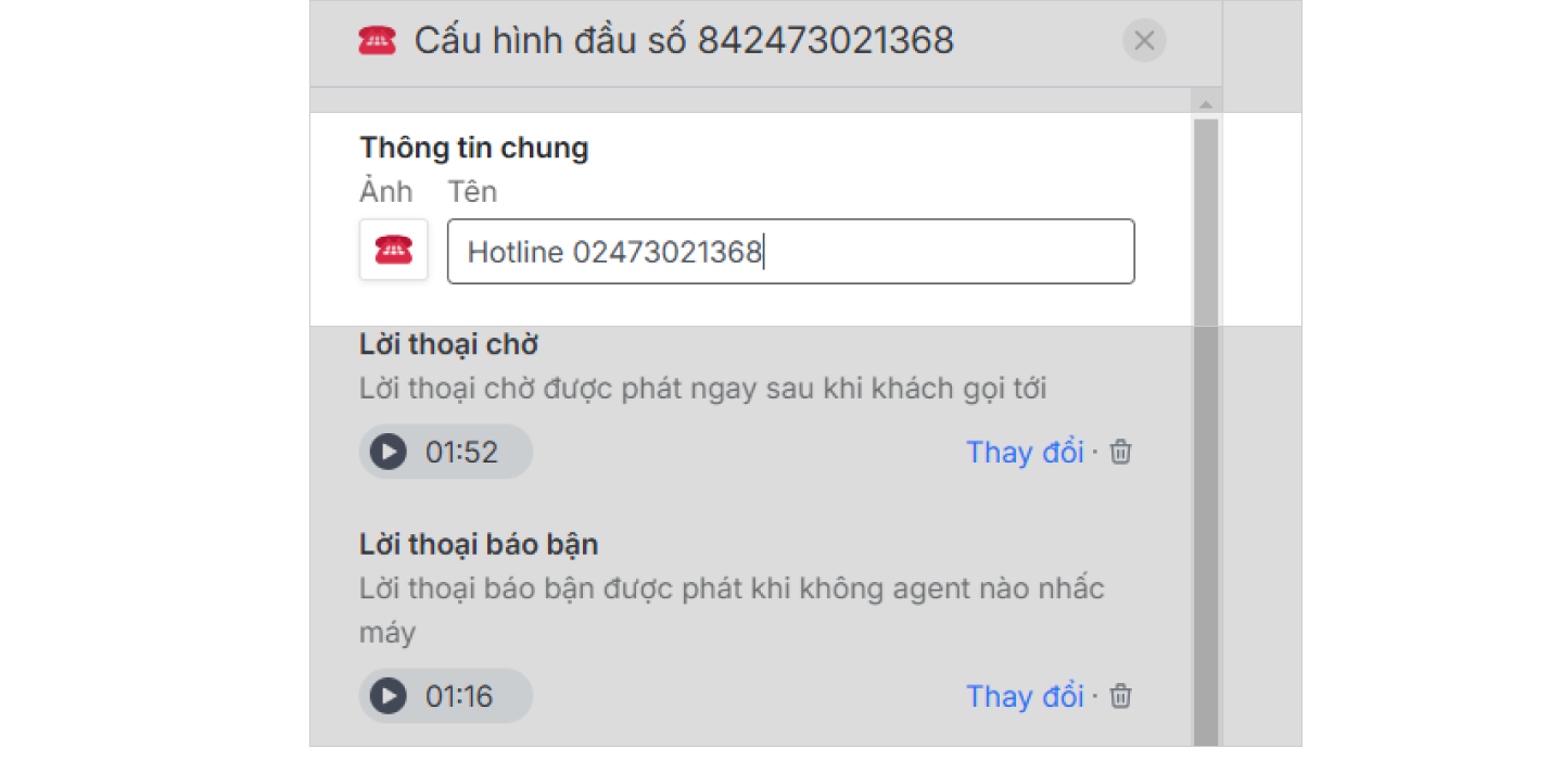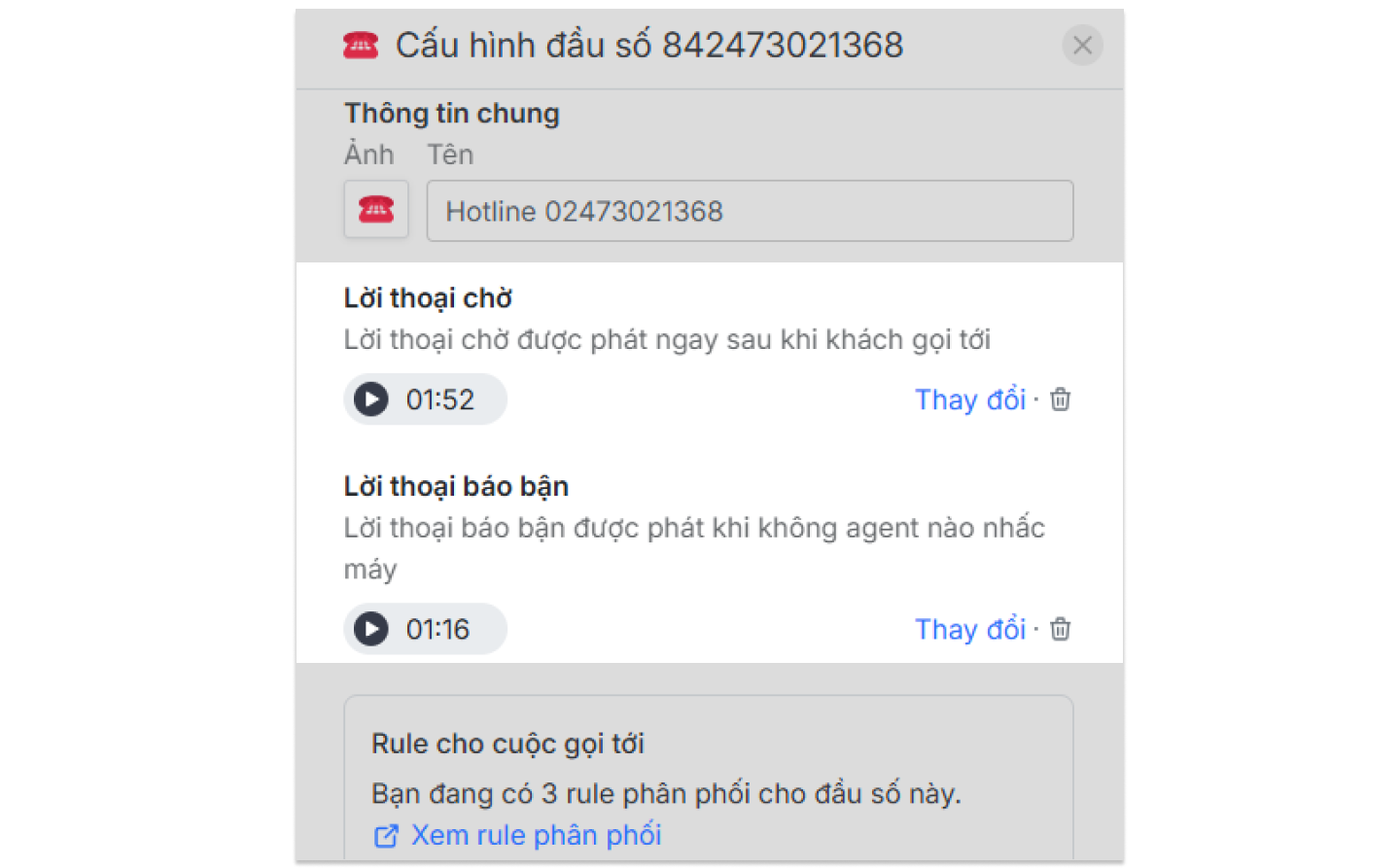 Tích hợp nhiều đầu số: Dễ dàng tích hợp 1900, 1800, cố định (024xx, 028xx…), phù hợp với mọi mô hình doanh nghi ệp, giúp phân bổ đầu số theo bộ phận hoặc chi nhánh (Hà Nội, TP.HCM…).