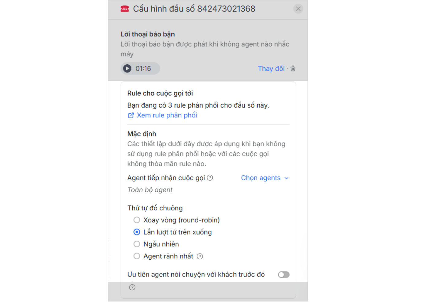 11. Cài đặt rule phân luồng cuộc gọi đến và giao đúng nhân viên phụ trách