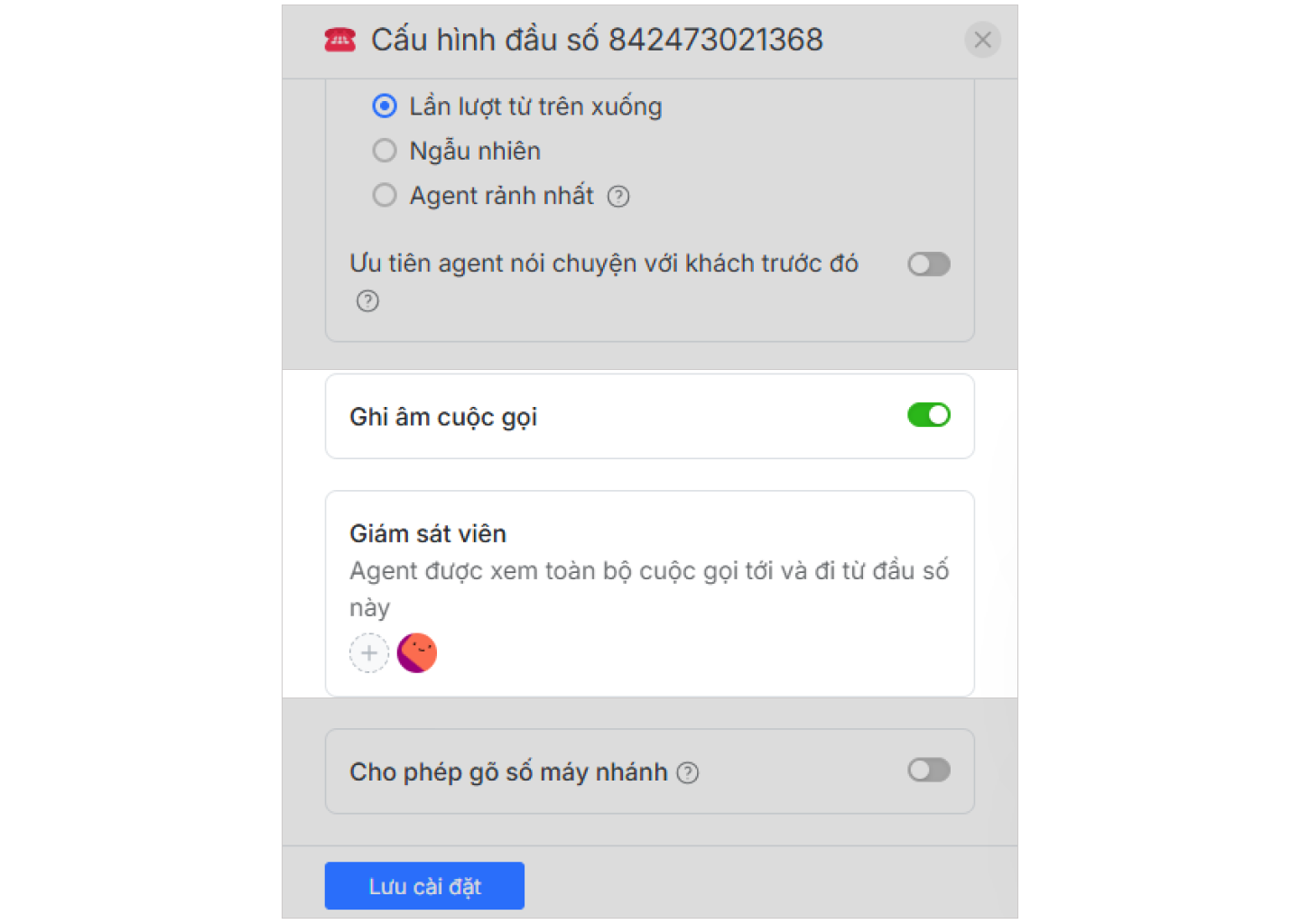- Thêm giám sát viên theo dõi được tất cả lịch sử cuộc gọi