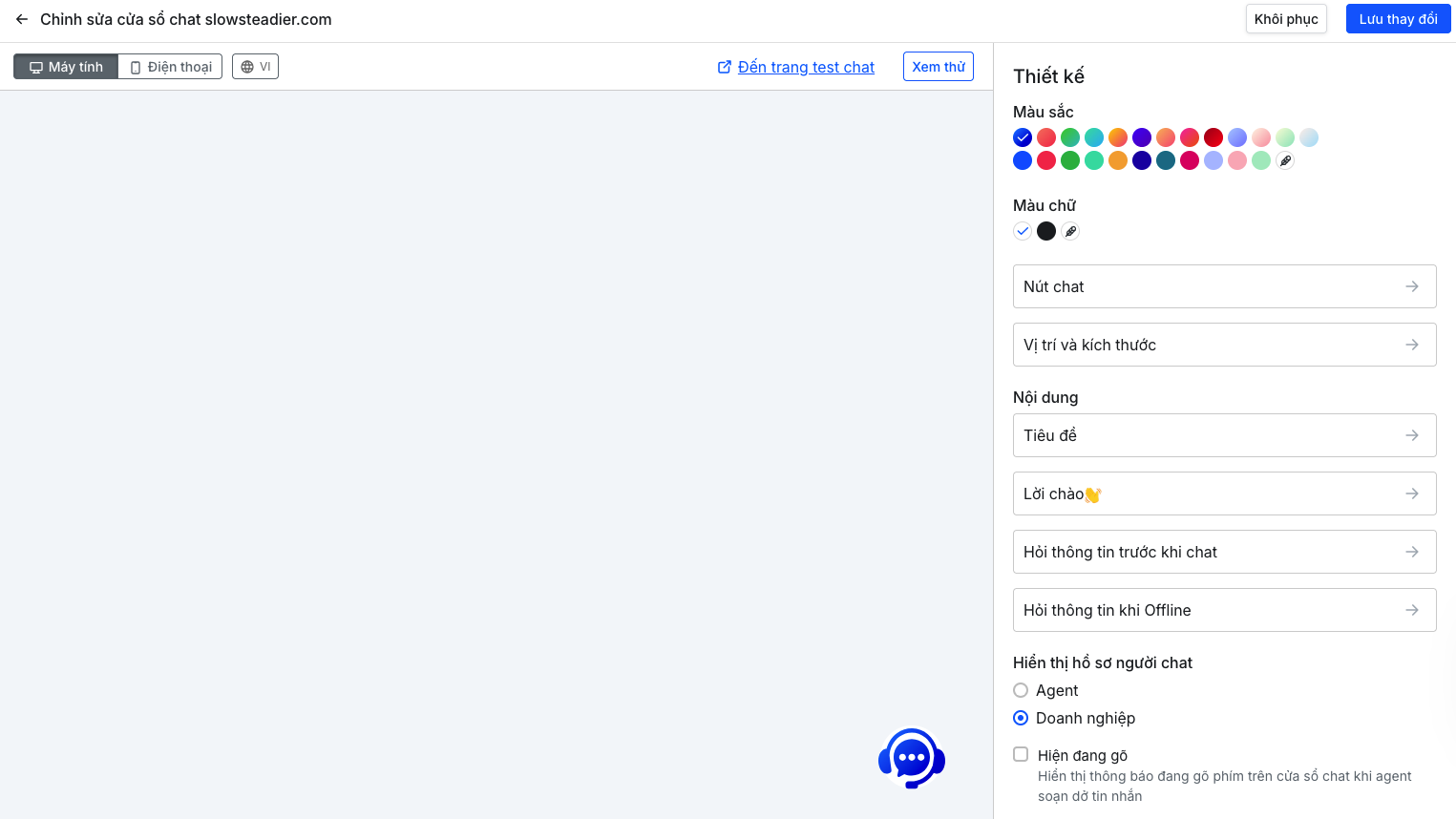 Để thực hiện chỉnh sửa thiết kế cửa sổ chat riêng cho từng website, bạn làm theo các bước sau: