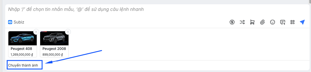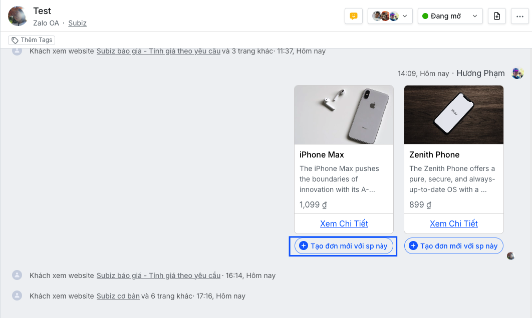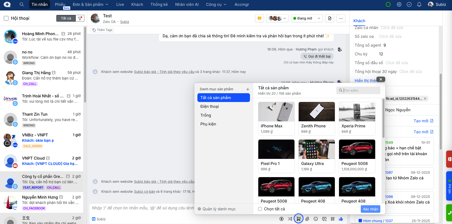 - Gửi sản phẩm trực tiếp từ hội thoại với khách