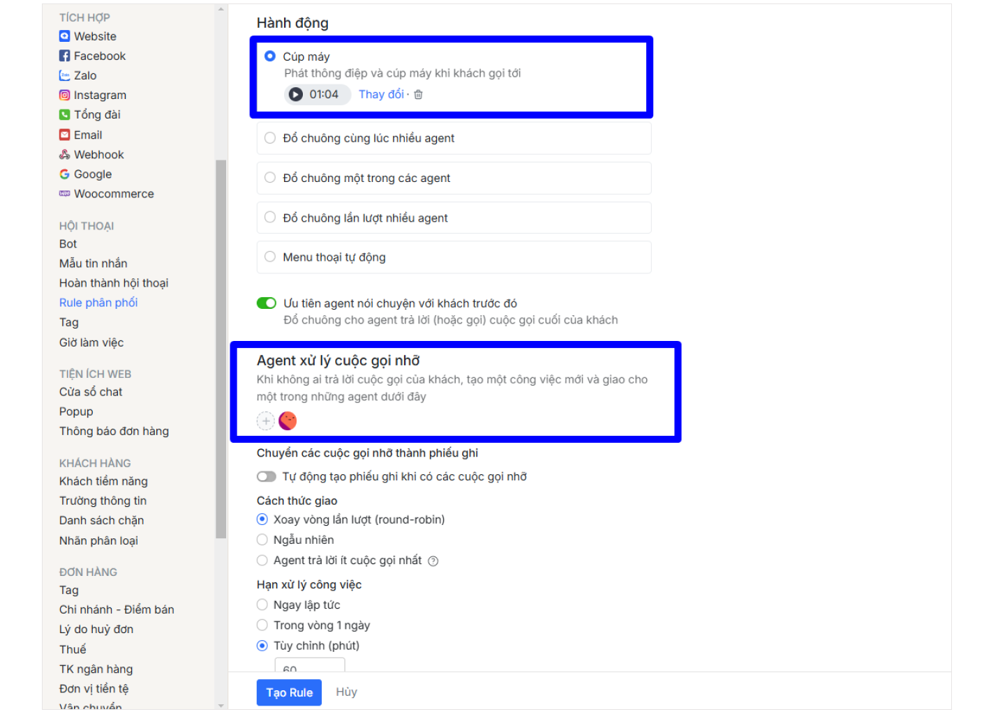 - Cài đặt nâng cao agent xử lý cuộc gọi nhỡ