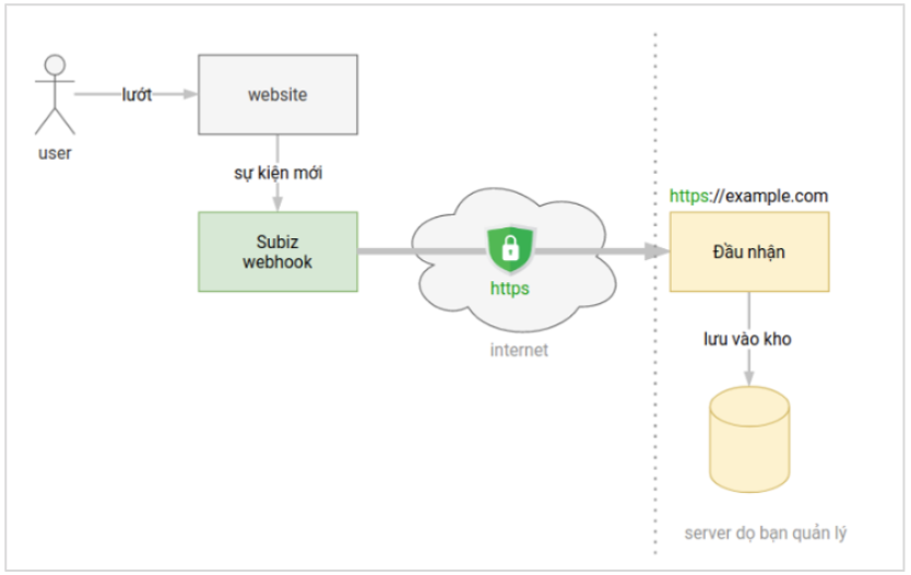 - Khi một người dùng mới vào website, Webhook thông báo sang cho server của bạn.