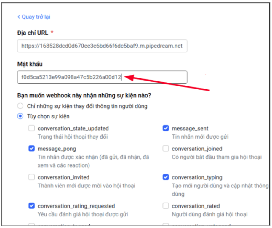 Thiết lập mật khẩu cho webhook