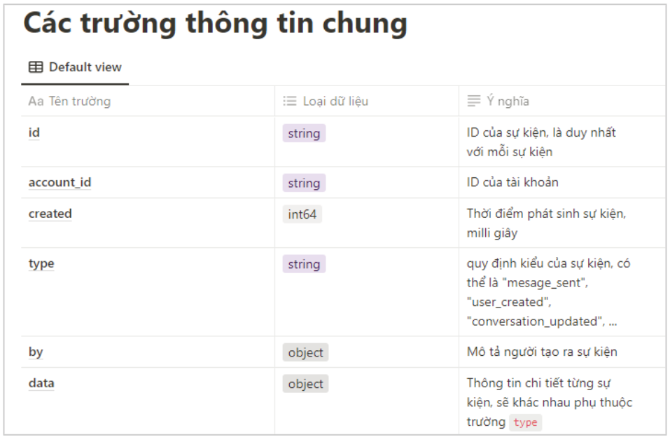 Mỗi sự kiện sẽ có các trường thông tin chung như ví dụ bên dưới, các trường này là bắt buộc và luôn luôn có giá trị.