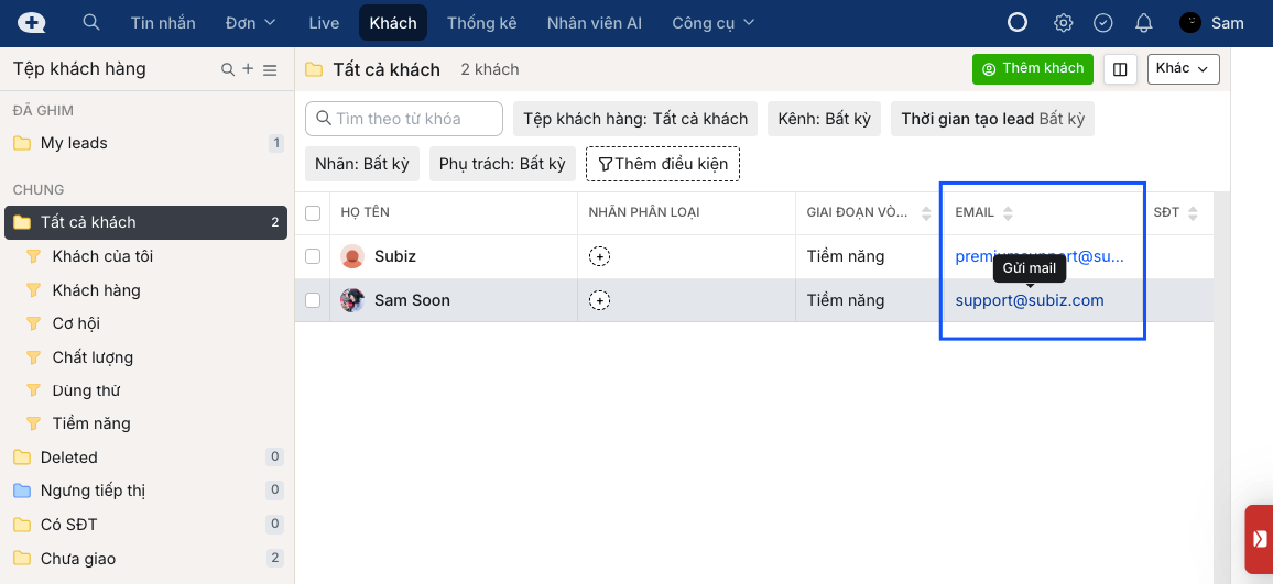 6. Subiz có tự động lưu thông tin khách hàng từ email không?