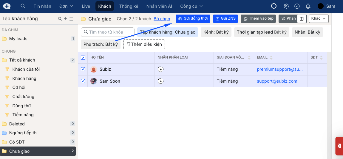 5. Tôi có thể gửi email cho hàng loạt khách hàng cùng lúc không?