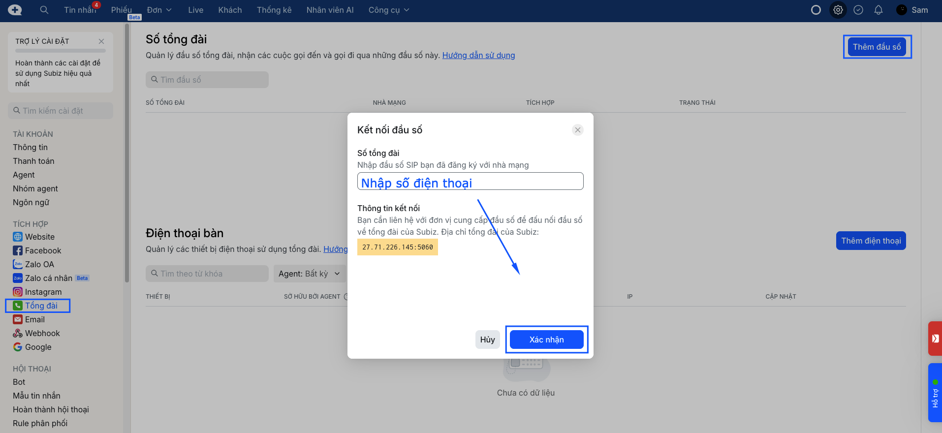 Tôi có số tổng đài dạng sim vật lý thì tích hợp vào Subiz được không?
