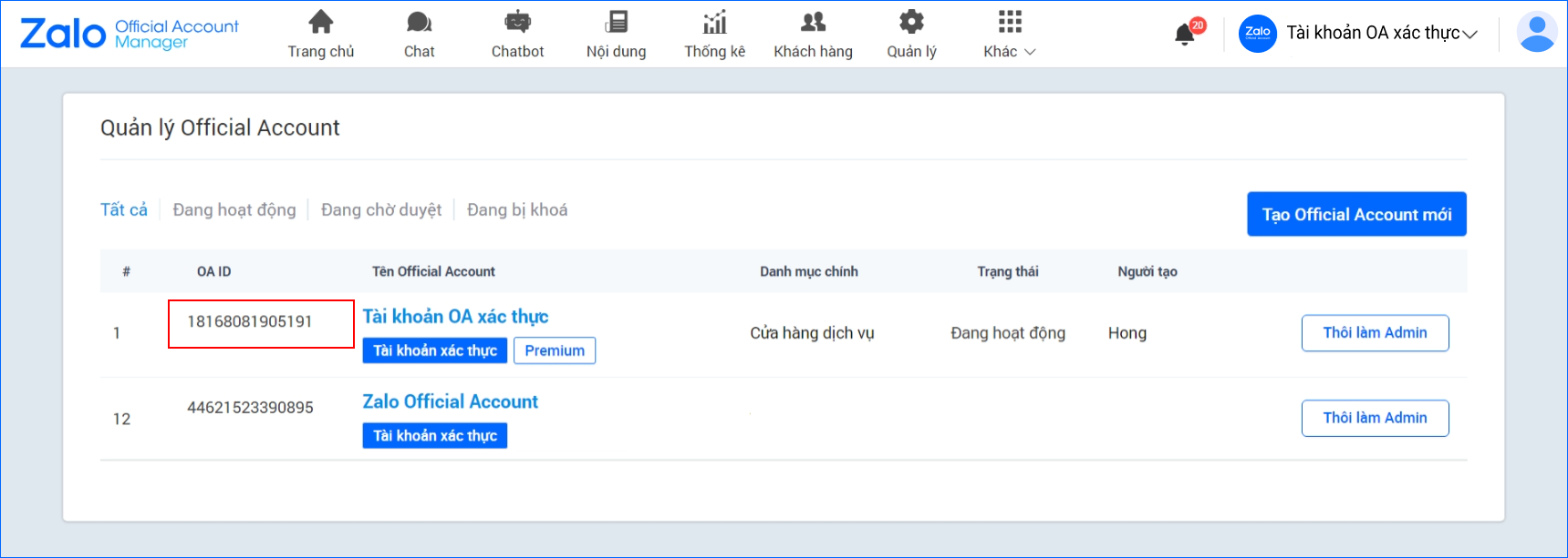 Bước 1: Tích hợp kênh Zalo OA lên Subiz