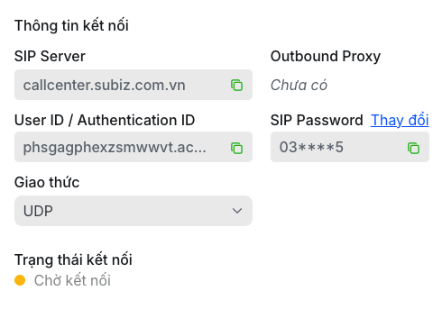 - Với các nhà cung cấp khác cấu hình về IP Subiz 27.71.226.145:5060