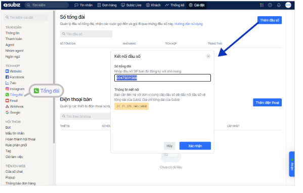 Khi bạn đã có đầu số tổng đài, bạn sẽ thêm đầu số này vào phần mềm Subiz với 4 bước sau: