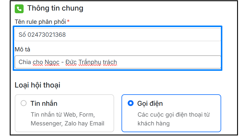Bạn có thể tự động phân phối cuộc gọi từng số tổng đài đến đúng agent phụ trách, bằng cách tạo nhiều Rule phân phối cuộc gọi cho từng số tổng đài.