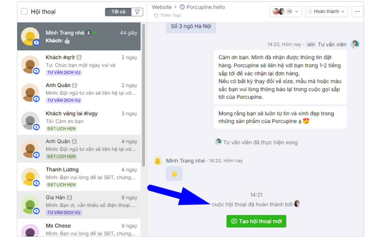 • Giúp agent kiểm soát tình trạng hội thoại, biết được cuộc nào đã hoàn tất và cuộc nào cần tiếp tục hỗ trợ.