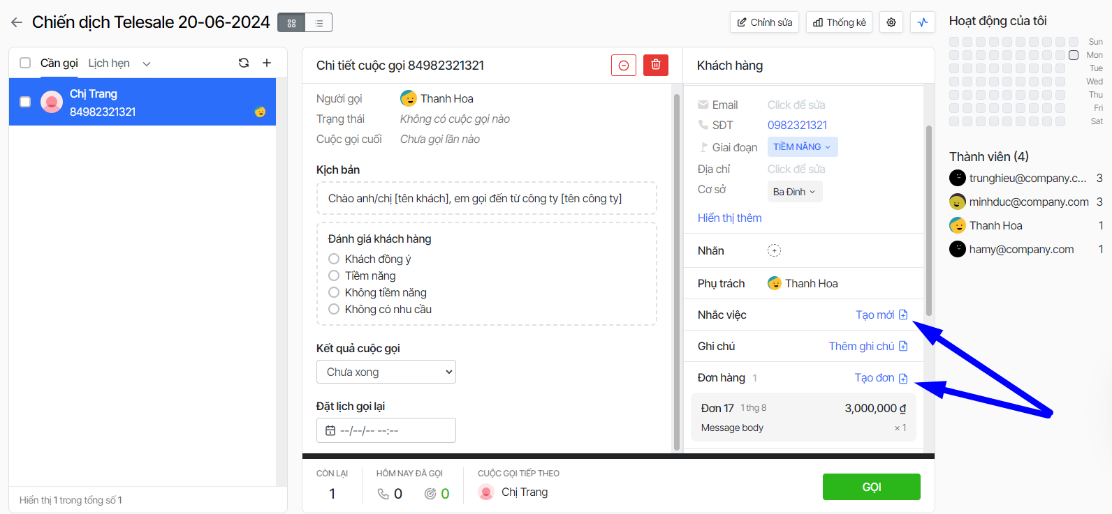 - Chia cấp bậc quản lý và thành viên: Phân quyền rõ ràng cho từng người, giúp quản lý hiệu quả quá trình gọi điện.