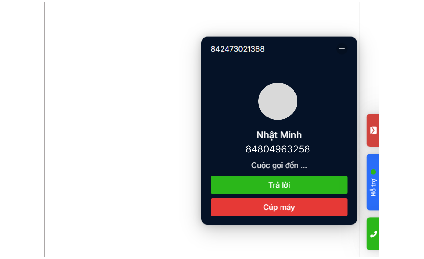 Khi có cuộc gọi đến, Subiz sẽ gửi thông báo cho bạn. Bạn chỉ cần nhấn "Trả lời" để bắt đầu cuộc trò chuyện.
