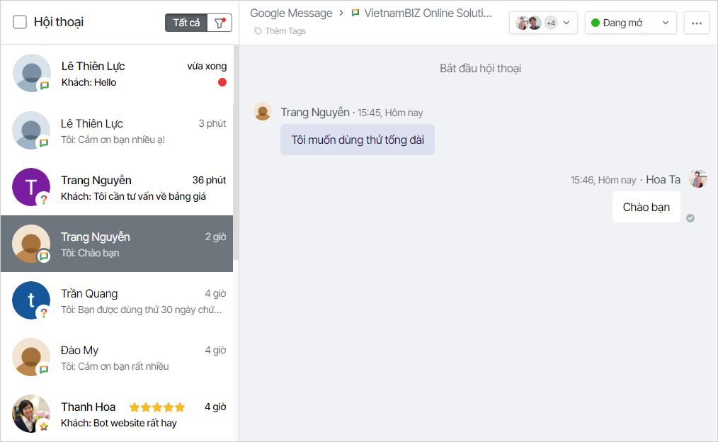 Từ đó, nhân viên tư vấn dễ dàng trả lời tư vấn khách hàng và quản lý thông tin khách hàng từ kênh Google này.