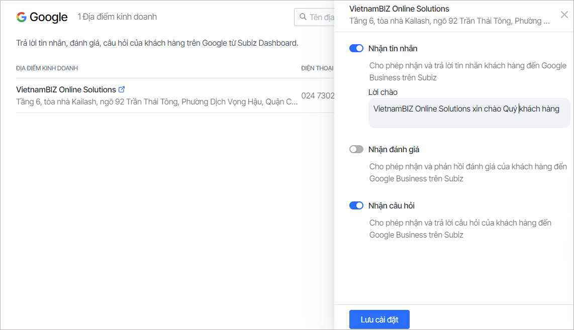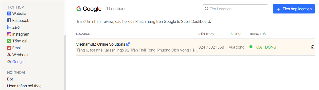 Quản lý kênh Google Business Profile trên Subiz