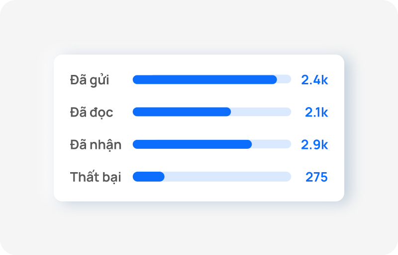 Thống kê chi tiết các chỉ số chiến dịch như số lượng email đã gửi, đã đọc, tỷ lệ hủy đăng ký...
